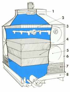 Der Kühlturm ist ein Wärmetauscher, in dem zu kühlendes Wasser